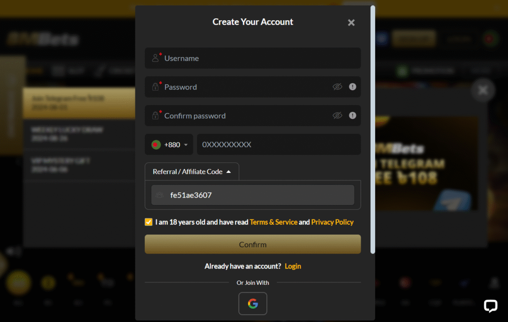 If you have a Google Account, you can log in quickly using this option in the registration form. So, on desktop or mobile via the 8MBets অ্যাপ, your account is always ready for real money prizes.